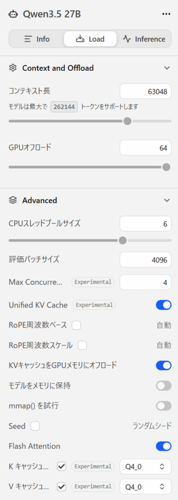 いきなり大規模かつ正確性を求められる本気のプロジェクトに組み込むのは怖かったので、現在アップデートする気を失っていたプロジェクトのリファクタリングを任せています。何度かコードの改変をさせているうち、一度もバグを含めた動作の仕様の変化に遭遇していません(リファクタリングとは、ざっくり言うと動作を変えずに内部のコードを整理することです)。以下のような設定をしてQ4_K_S量子化モデルをLM Studio + Opencodeで利用しています。これでギリギリRX7900XTXの24GBに載るか載らないかといったところです。
