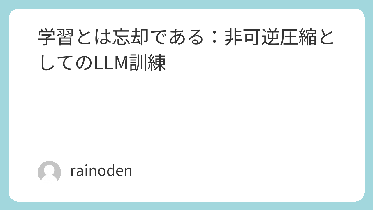 論文の主張はこうだ。LLMは訓練の過程で、次トークン予測という目的に関連する情報だけを残し、それ以外を捨てている。つまり学習しているのではなく、選択的に忘却している。残った情報の構造こそがモデルの能力を決める。